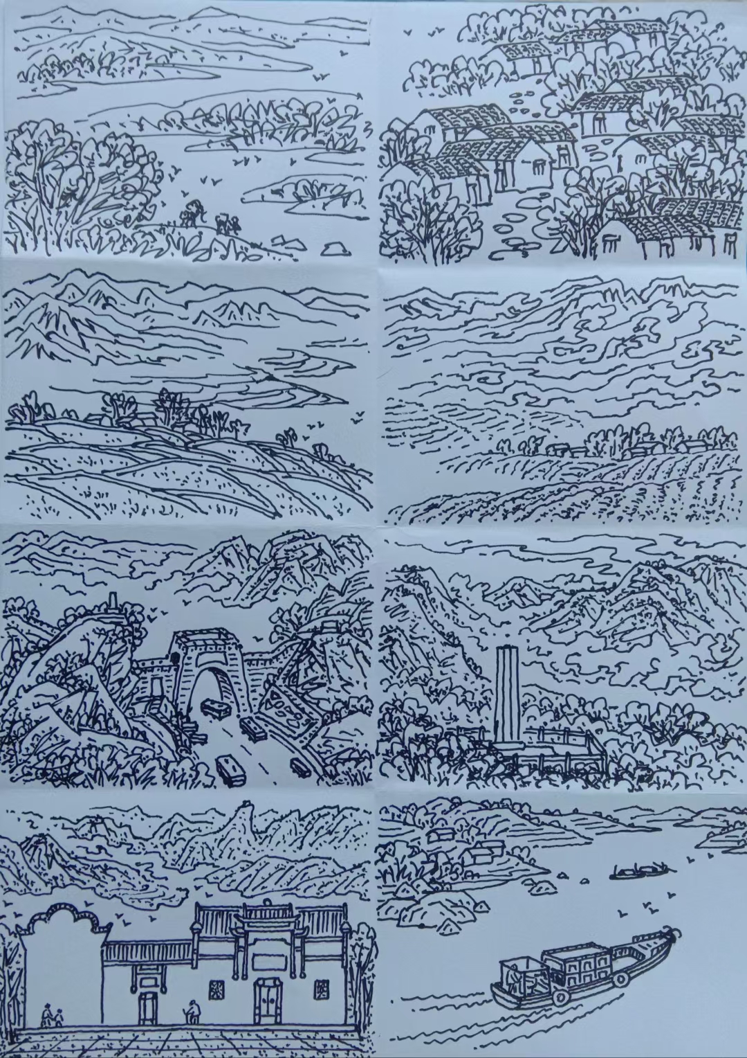 微画:湿地、民居、贡田、贡茶、关垭、国心、祠堂、楠湖