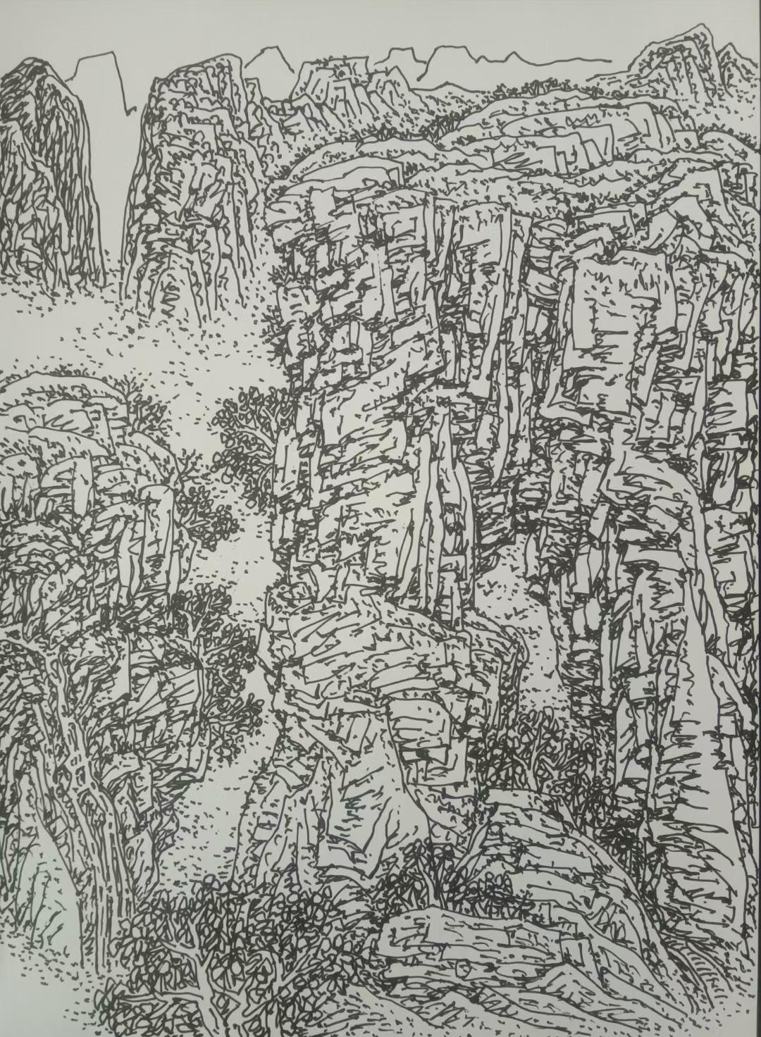 线描山石结构
