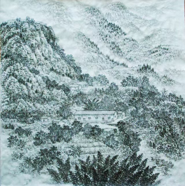 溪山居主人打油自嘲:溪山深处老书生,砚田躬耕霜染鬓,平生淡泊书作友,心无旁骛画寄情,兴来泼墨三千纸,兴罢掷笔问青冥,烟云迷途何为径?丹青误我我负卿。